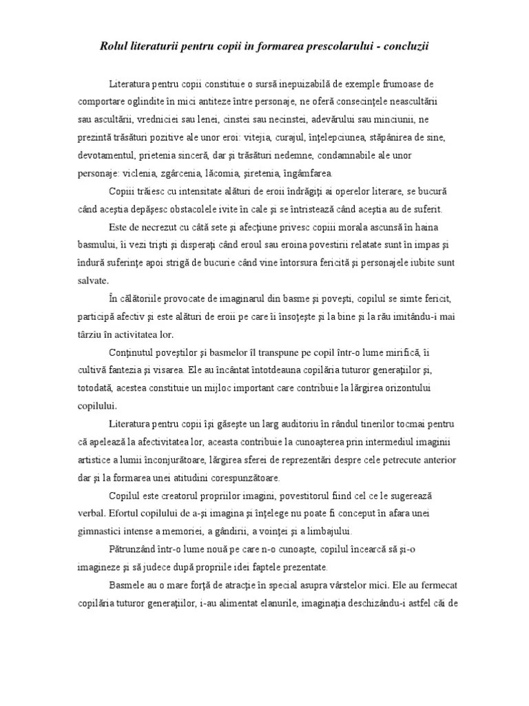 Copilria ca stare sufleteasc este o permanena a vieii noastre, ,, ca sa fie opere de art, scrierile pentru copii i tineri... A short summary of this paper. 16.03.2007 · conceptul de literatura pentru copii (referat) materiale formare | predare/învăţare. 37 full pdfs related to this paper. Literatura pentru copii este parte integrant a literaturii naionale i universale. 37 full pdfs related to this paper.