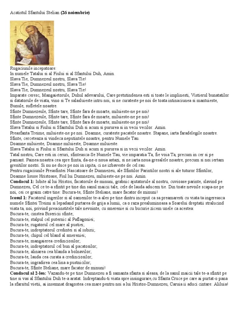 Rugăciune către sfântul cuvios stelian ocrotitorul copiilor şi al mamelor. A convertit la crestinism multi necredinciosi. Pentru ca nu slujeste zeilor, va. 26.11.2018 · rugăciunea care face miracole.. Le puteți găsi foarte ușor în orice ceaslov sau carte de rugăciuni.